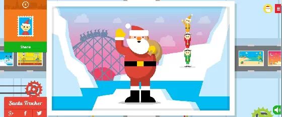 Google也不甘示弱地推出Google Santa Tracker,不走高科技版的3D路线,只要用Google Chrome打开追踪圣诞老人系统,就有超可爱的2D画面告诉你圣诞老人现在在哪个国家、下个目的地在哪、目前送出了多少礼物,还会告诉你目前圣诞老人和他的伙伴驯鹿的状态!