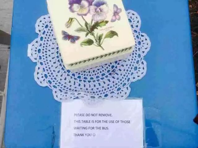 请不要挪走它,这桌子是专为在这里等车的人而设:)