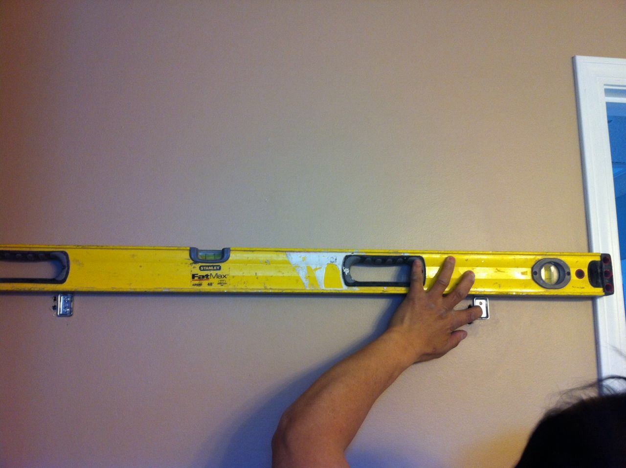 用水平尺放水平固定第二个固定端位置