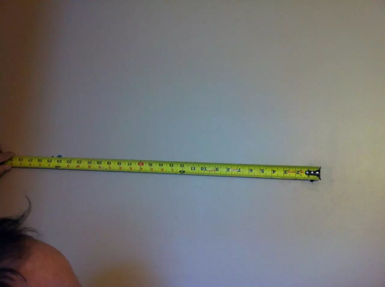 在墙上从第一个螺丝中心量同等长度做记号