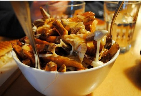 在第一位的当然是加拿大法裔移民创作的经典民间美食–肉汁芝士薯条,这也是加拿大最具异域风格的代表性美食。据说上世纪50年代,魁北克的一名顾客点餐时,要店主将小块奶酪与薯条混在一起.店主觉得他的要求很不可思议,便说了一句:”Ca va faire une maudite poutine” (法语:那要弄得一团糟啊).后来人们就把这道食品称为“Poutine”。正宗的魁北克肉汁芝士薯条的做法是用辣肉汤搭配蘸有凝乳的脆薯做成的,薯香搭配浓浓的芝士,绝对让你一吃就停不下来~