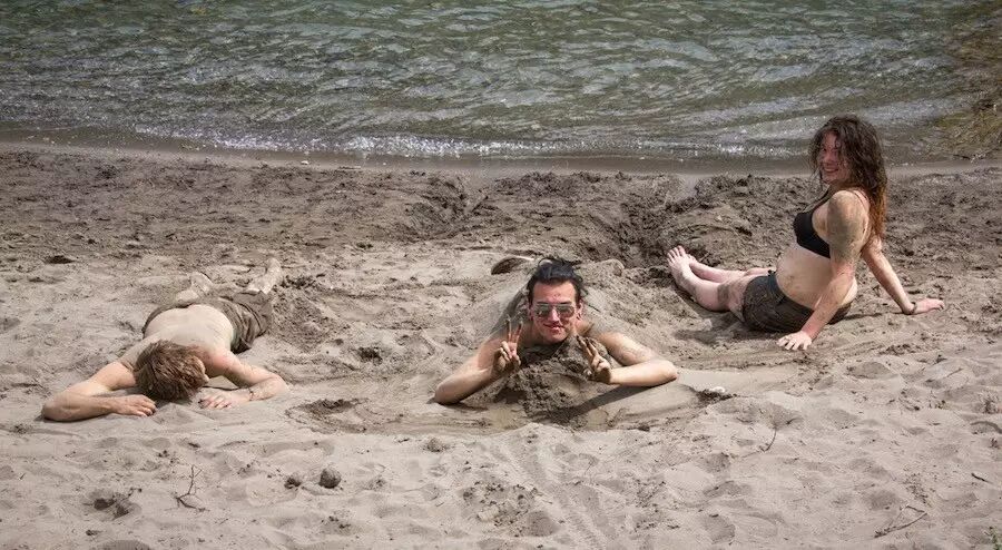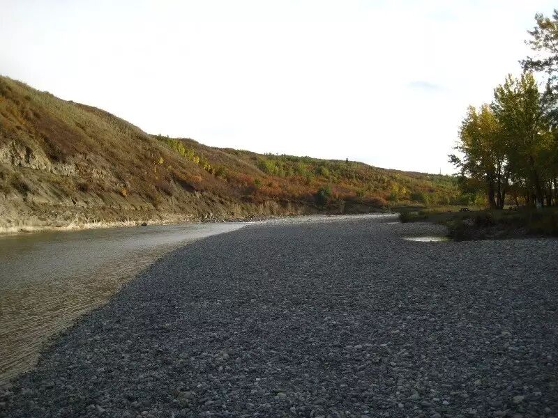理论上来说这里不是湖滩,是河滩。Elbow River从Kananaskis流向卡城,这里的水浅缓,温度也不低。,非常适宜游泳。河边随处都可野餐、烧烤和日光浴。