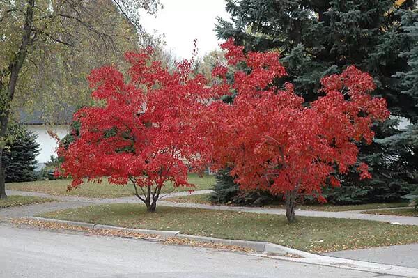 身形介于小树和灌木之间。最显著的特点是叶子在秋天会变为艳丽的亮红色。多干植物。