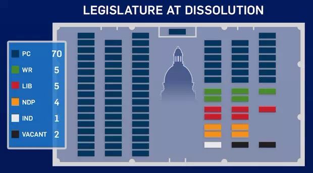 那么,最佳组合其实是保守党得到多数,但是是勉强多数派。阿省省议会有87个席位,一个政党得到44席,即成执政多数党,而保守党这么多年一直是强势多数派,六十多席位,多多少少可以培养为所欲为的心态,这次大选,很可能做不到。
