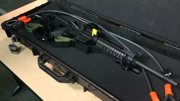 周六晚上,一位下班的警员把自己的Subaru停在Crowfoot的一家餐馆外面,当他从餐馆出来时,发现有人打开了他的车厢,并偷走了一只上了锁的枪盒,其中包括(如上图):
