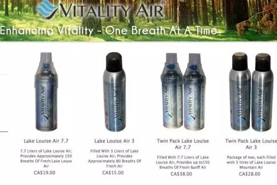 他们的罐装空气相当于150次呼吸时的吸气量,并配有面罩。在线商城中的一大罐班夫空气售价$15,而同样含量的Lake Louise售价为$19。