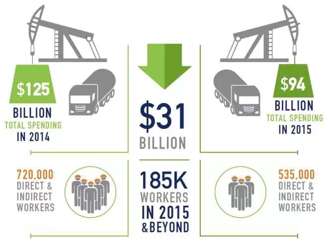能源产业今年预期的开支为$940亿,去年为$125亿加元。全国各省都受到不同程度的影响,Alberta的经济受其影响最为显著。