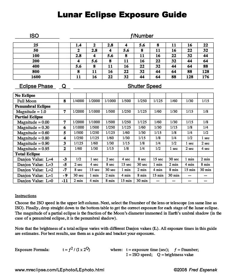 建议使用200mm – 600mm, UP进行拍摄, F8-11, 最亮时1/200. 月全蚀时天空很暗,快门区速度用1秒,大光圈,高lSO.
