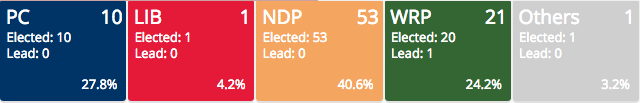 NDP的领袖Rachel Notley将成为新任省长,NDP历史上在在议会获得最多席位是1986年的16席,而1993年NDP未能进入议会。