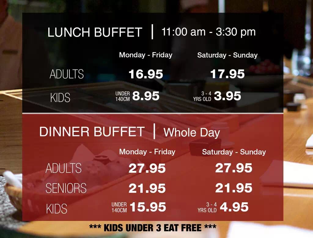 这家寿司店的主打宣传是他家的All You Can Eat,价钱见下图,食物任点,但不是Buffet。可以选择的项目的确很多,号称有168种,每桌给一个Ipad,可直接在上面点餐,服务员会尽快上菜。