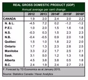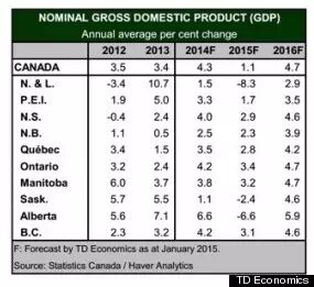 TD银行预测,三个主要产油省份的经济下滑会迅速扩大至整个加拿大。但是这对Ontario来说是个好消息,安省会主导加拿大今年和明年的经济,GDP将会在2015年增长2.8%,2016年增长2.5%。