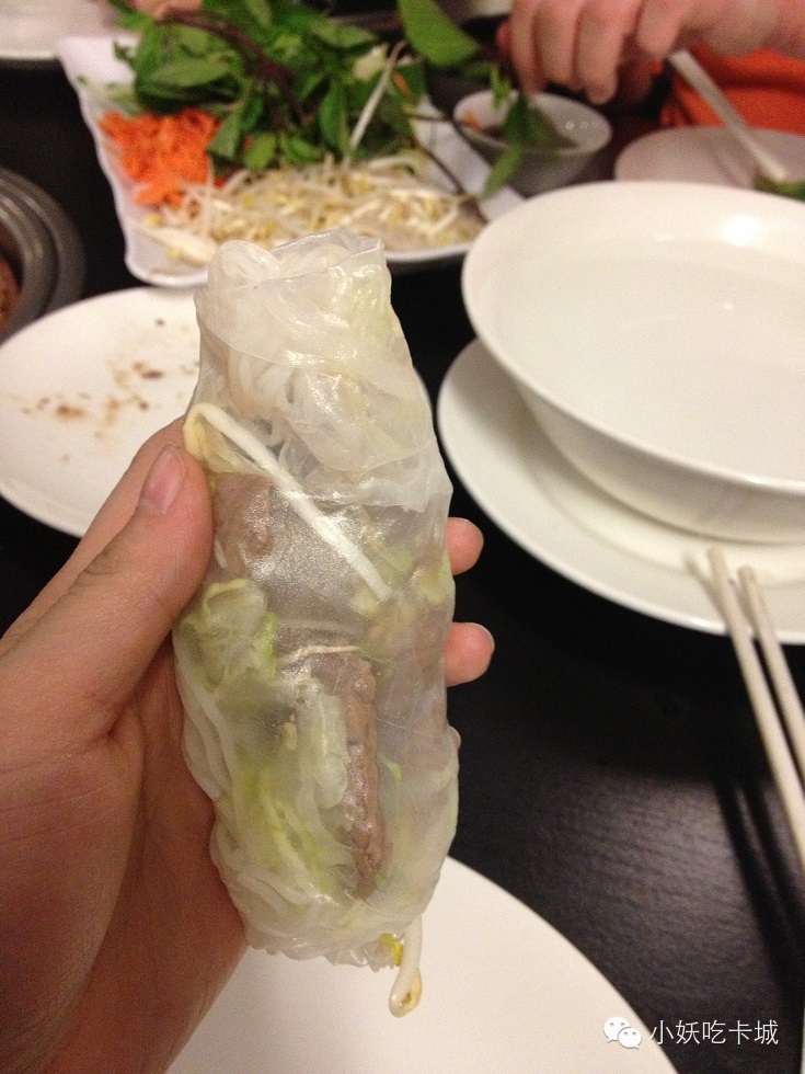 好 多朋友推荐过他家的越南牛肉粉。小妖去了几次,没好好吃过牛肉粉,倒是吃了一些越南店少见的,像是上次吃的铁板炒菜(和中国的感觉差不多),和这次吃的烧烤。有意思的是他的海鲜卷 要自己沾水变软了之后再包上自己喜欢的牛肉海鲜和菜。完全自己动手的海鲜卷:)8错8错。